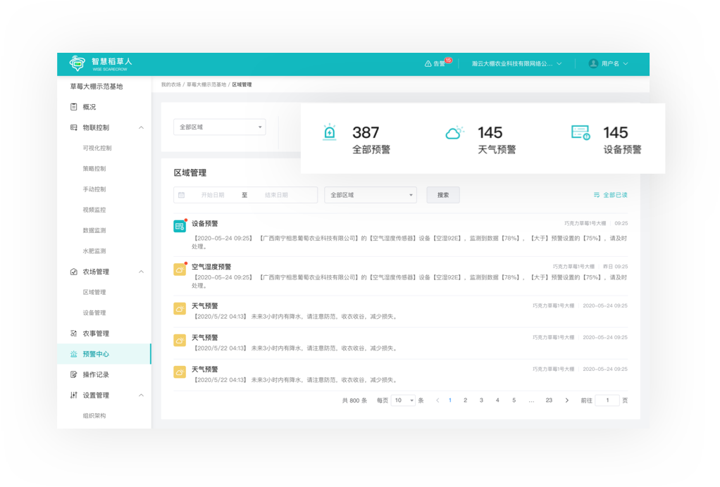 农旅结合瀚云智慧稻草人针对大棚种植、大田种植、畜禽养殖等多样化农业场景的监测、控制、管理需求, 专业向集成各种功能模块,满足种养殖农户在线管理需求